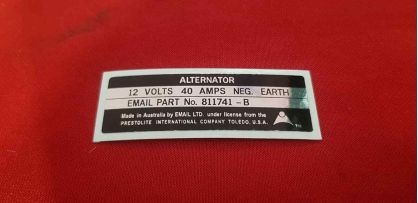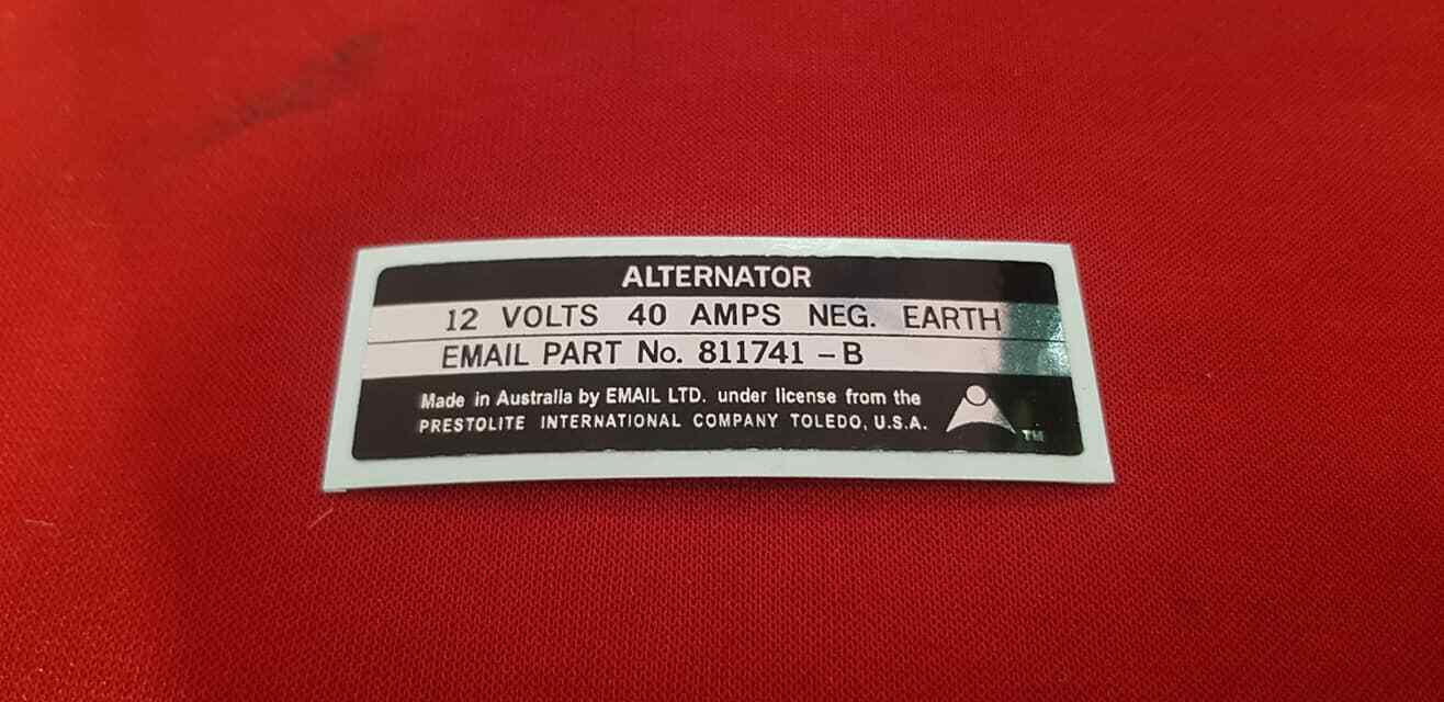 Email 40amp Alternator Decal Black on Chrome Foil 68 XT Fairmont GT