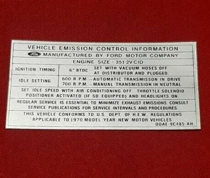 FORD FALCON XY 351 2V K CODE ROCKER COVER EMISSION DECAL FAIRMONT GS