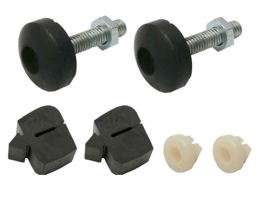 To install the bumpers into the guard| lubricate the nose of the rubber then push into the guard| push the plastic nuts into the holes in the radiator support panel| then screw the threaded bumper into the plastic nut with a Philips head screwdriver until the bonnet is level with the guard| adjust the nut down to lock the thread.