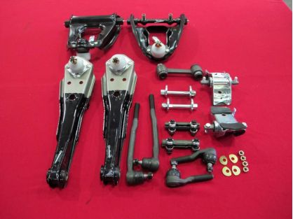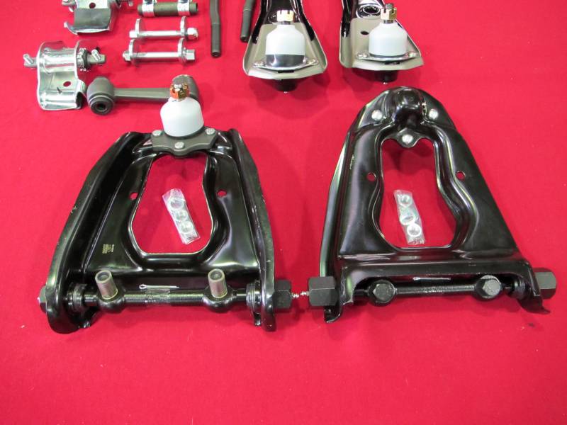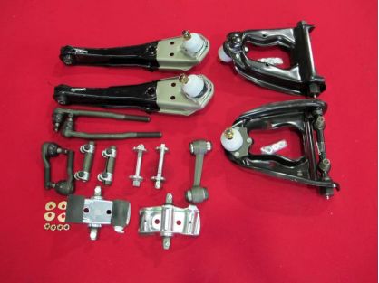 KIT INCLUDES UPPER AND LOWER CONTROL ARMS, SPRING SADDLES AND NUTS, TIE RODS X 4 , TIE ROD ADJUSTERS AND IDLER ARM AND CAMBER BOLTS